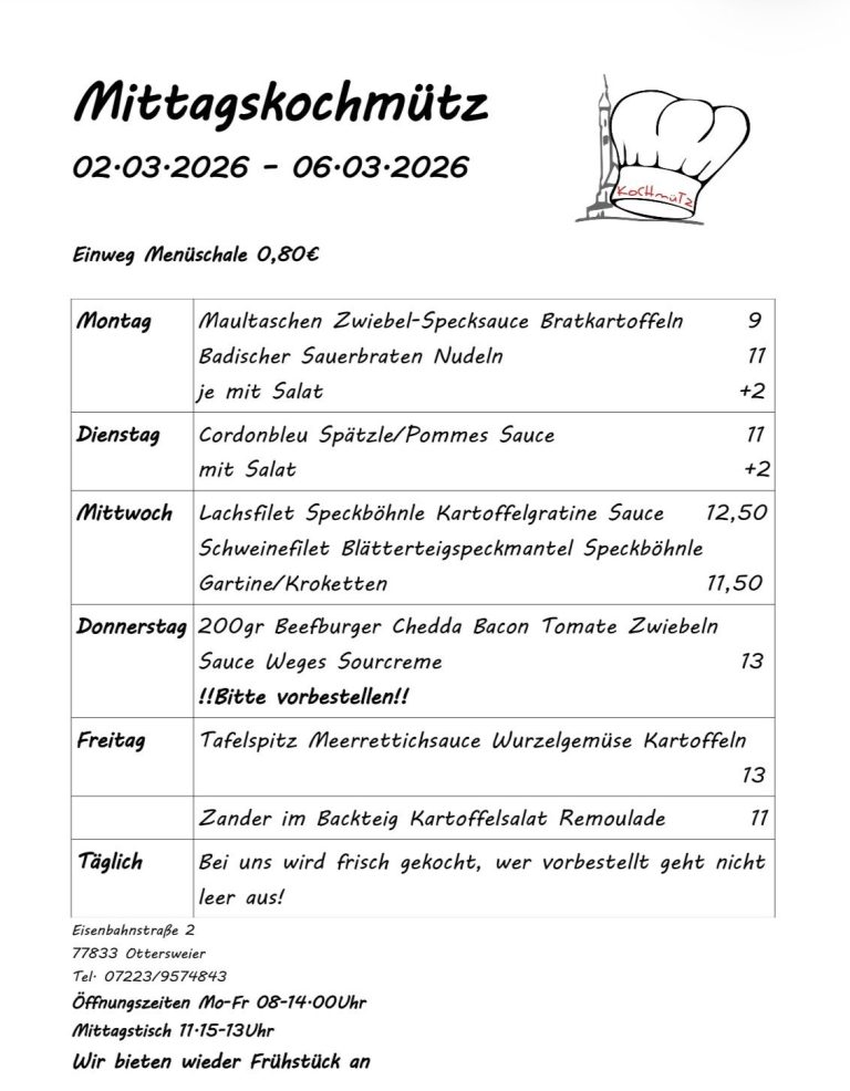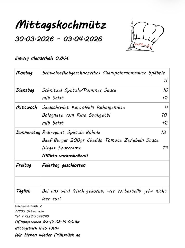 Vorbestellungen per E-Mail bitte mindestens 1 Tag vor der Abholung. Am gleichen Tag können wir nur telefonische Vorbestellungen annehmen.